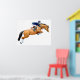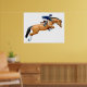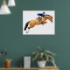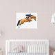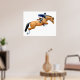 Diseño original de arte fino de un espectáculo de bahía saltando caballo y jinete de la diseñadora Carolyn McFann de Two Purring Cats Studio en una impresión poster de calidad para hinchas de caballos y ecuestres.