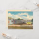Ilustración vintage de viaje y transporte con la imagen del fabuloso lugar de vacaciones Golden West Lodge, un ejemplo clásico de motel de los años 50. Una palmera está junto a la oficina y un coche antiguo está en el aparcamiento. ¡Hora de un viaje por carretera!