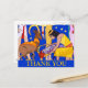 Gracias postales con diseño de mitología egipcia con un fondo azul brillante.
