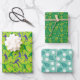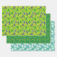 Tres hojas de papel envuelto con tres patrones verdes diferentes. Ideal para envolver un regalo para el jugador de tenis