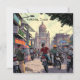 Ilustracion estilo libro de historietas en el centro de Kolkata, India Parked motos y tarjetas. Una tarjeta con un ilustracion de calle concurrida del centro, con edificios, restaurantes, tiendas y gente en sus motos.