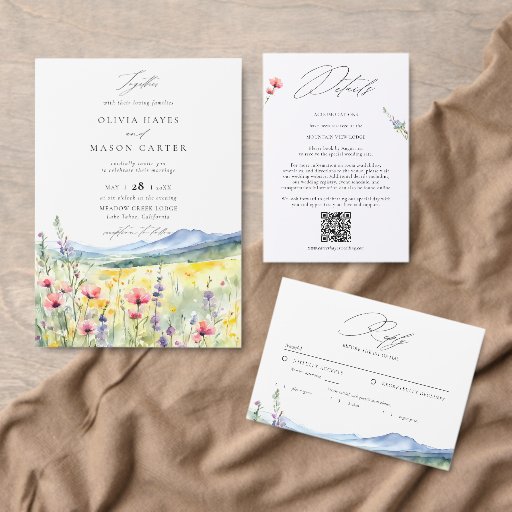 Guide your guests through your celebration with this majestic mountain watercolor wedding program and order of service. Featuring a breathtaking hand-painted mountain range and a blooming wildflower meadow, this ceremony schedule is the perfect keepsake for rustic outdoor weddings and adventure elopements. The elegant layout provides a professional way to introduce your wedding party, list the processional order, and share a heartfelt thank-you message with your friends and family. Designed to coordinate with wildflower wedding themes, this ceremony guide adds a sophisticated, artistic touch to your reception decor. Whether you’re hosting a destination wedding or a romantic meadow ceremony, these programs ensure your guests stay informed while capturing the whimsical spirit of your nature-inspired love story.