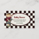 Tarjeta de visita de la fecha del juego del muchacho elegante, hecha en un negro y del modelo a cuadros blanco. Un área de texto oval apagado blanca, en el centro, se adorna con el borde coloreado marrón y los gráficos lindos del país, de un niño pequeño que sostiene un monopatín. Personalice el texto para el niño. Gran manera de permanecer en contacto con otras mamáes y de arreglar fechas del juego, fiestas de cumpleaños, y los gallineros que se sientan del bebé.