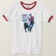 El color es muy bonito al natural, como la foto. El tejido es suave y de buena calidad. Sin defectos en el tintado, ni hilos sueltos o descosidos. Bien la impresión. Los bordes de las letras y el dibujo son nítidos, y el color contrasta muy bien con el de la camiseta.