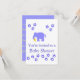 Un elefante de los azules cielos, sosteniendo su peluche. Las tarjetas adaptables de RSVP, añaden los detalles antes de ordenar. Los productos a juego disponibles incluyen + las invitaciones del nacimiento, y le agradecen cardan, los primeros de la torta en zazzle.com/artistjandavies,