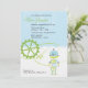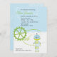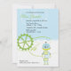 Una invitación adaptable querida de la fiesta de bienvenida al bebé que ofrece un diseño azul y verde del robot. El hacer juego le agradece cardar y favorecer al pegatina.