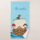 Toallas de baño adorables con muchachos lindos de un pirata y una nave grande. Es una gran idea para un regalo. Personalice con su propio texto especial. Artículos a juego disponibles en nuestra tienda. Algunos gráficos por ClipArtopia