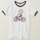 Una figura muchacho del palillo que monta su bicicleta en muchacho en las camisetas de la bicicleta, tazas, tarjetas, las bolsas de asas, imanes, pegatinas, y otra ropa y regalos del tema de la bicicleta. Los muchachos que aman el montar de las bicis amarán este diseño lindo.