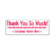 El diseño de este sello de goma incluye el agradecido mensaje "¡Muchas gracias!" y el nombre de una organización personalizable. Podría ser utilizado por una empresa, una organización, un negocio o un profesional para mostrar gracias a clientes o clientes que han hecho una compra.