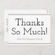 Este diseño elegante de tarjeta postal de agradecimiento presenta el mensaje "¡Muchas gracias!" en la parte delantera, junto con un mensaje personalizado en la parte posterior. Podría utilizarse para dar las gracias a alguien que ha asistido a una boda, un funeral u otro evento.