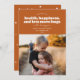 Esta moderna tarjeta de vacaciones incluye las palabras "deseándote salud, felicidad y muchos más abrazos en el año que viene" escritas en blanco sobre un fondo de color rojizo. Tiene espacio para una sola foto y sería perfecta como tarjeta de vacaciones o tarjeta de Año Nuevo.