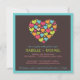 Un corazón de corazones diseñado en brillantes tonos turquesa, lima, naranja y rosa caliente - hace una invitación divertida y alegre pareja a la ducha de boda. Disponible en diversas combinaciones de colores y con franqueo y pegatinas a juego también!