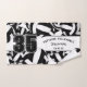 Esta toalla de color para jugadores de voleibol tiene balones de voleibol de tamaño variado en blanco y negro, girados de forma diferente en un fondo blanco y un número jersey prominente en negro sobre una franja de color blanco negrita y de largo, sobre la que también se puede personalizar el nombre del atleta, el nombre del equipo y el nombre de la mascota - por katz_d_zynes