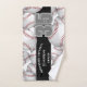 Esta toalla única para un jugador de sóftbol o de béisbol tiene softball blancos de tamaño variado, realistas y limpios, girados de todas formas en un fondo blanco y un número jersey prominente en gris, sobre una franja de color negro de largo y negrita, sobre la que también se puede personalizar el nombre de la atleta, el nombre del equipo y el nombre de la mascota - los elementos de personalización en negro y gris se pueden personalizar para que coincidan con los colores favoritos de su equipo zynes