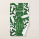 Esta toalla atlética para jugadores de voleibol tiene balones de voleibol de tamaño variado verde y blanco, girados de todas formas sobre un fondo blanco y un número jersey prominente en verde sobre una franja de color verde de largo y ancho, sobre la que también se puede personalizar el nombre del atleta, nombre del equipo y nombre de la mascota - por katz_d_zynes