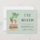 Boho moda nueva casa / cambio de dirección invitación de movimiento verde salado con acuarelas de libros y plantas de la casa. En el frente, personaliza con tu nombre, el texto "Me he mudado" y tu nueva dirección. Al revés, personaliza tu invitación con más detalle e incluye un número de teléfono y un correo electrónico si lo deseas.