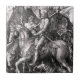 Muerte del caballero de Albrecht Durer y la teja del diablo. Grabar en madera que graba a partir de 1513. Uno de los grabados más famosos de Albrecht Durer septentrional del artista del renacimiento, muerte del caballero y diablo es un trabajo alegórico que ofrece un montar a caballo europeo septentrional del caballero en armadura llena en un caballo flanqueado por la muerte, que sostiene un vidrio de la hora, y el diablo bajo la forma de cabra. El trabajo representa la lucha cristiana contra tiempo y la tentación. Un gran regalo para las fans de Albrecht Durer, arte renacentista septentrional, grabados del grabar en madera, y pinturas del caballero y medievales.