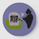 Este reloj impresionante presenta una imagen de la Parca Grim Reaper, también conocida como Muerte, creada usando vectores. Se encuentra amenazante en un cementerio sosteniendo su guadaña con su mano blanca y humilde. Sus ojos morados hundidos y su sonrisa demoníaca sólo son visibles bajo su manto negro. En el fondo hay un cementerio con QEPD pintado en negro espeluznante.