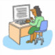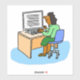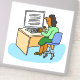 Ilustracion de empleados de Office. Dibujo de una trabajadora de oficina en su escritorio. Pegatina mostrando a una mujer asiática trabajando en una oficina en su computadora.