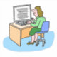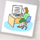 Ilustracion de empleados de Office. Dibujo de una trabajadora de oficina en su escritorio. Pegatina mostrando a una mujer blanca trabajando en una oficina en su computadora.