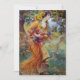 Imagen vintage de arte fino de mujer con vestido floreado y girasoles en el cabello. Colores de otoño en pintura de Franz Dvorak.