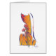 Retrato de una mujer con flores rojas—Arte de inspiración abstracta y expresionista Modigliani caracterizado por líneas acariciadas sinuosas en color púrpura y gris que definen un cuello largo, curvo, rostro oval alargado y figura simplificada. Mezclas de color degradado de rojo y amarillo. Arte de Margaret Loftin Whiting.