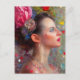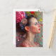 Mujer con flores y corazón postal