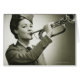 Mujer joven con uniforme de soldado jugando con trompeta, (B&W), retrato | George Marks | AssetID: 57520101