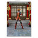 Representación digital en 3D de una hermosa mujer de batalla asiática sobre el fondo tradicional de un templo