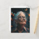 La IA generó arte de una anciana rodeada de mariposas en tonos azules y naranjas
