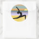 © Sunny Mars Designs - Beach Yoga Warrior Pose Personalizable Round Adhesive Pegatinas - Guay, vibrante personalizado novedad playa personalizado de yoga rodea pegatinas con una silueta negra de una mujer que practica yoga en la playa con el sol en el fondo. Concepto de salud, fitness, paz y tranquilidad. Ideal para los amantes del yoga, los profesores de yoga, los amantes del yoga o los estudiantes de yoga. Puedes personalizarlo añadiendo tu propio nombre o detalles de tu estudio de yoga o clases de yoga.