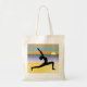© Sunny Mars Designs - Beach Yoga Warrior Pose Personalizable Canvas Tote Bags - Guay, vibrante playa personalizado yoga asequible bolso de lienzo con un ilustracion de silueta negra de una mujer practicando yoga con la playa y el sol en el fondo. Concepto de salud, fitness, paz y tranquilidad. Ideal para los amantes del yoga, los profesores de yoga, los amantes del yoga o los estudiantes de yoga. Puedes personalizarlo añadiendo tu propio nombre o detalles de tu estudio de yoga o clases de yoga.
