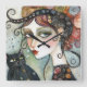 Una mujer elegante y un reloj de gato negro para tu casa. Para el propietario del gato refinado.