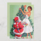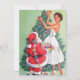 Retrocede en el tiempo con esta encantadora tarjeta de Navidad Retro de Mujer de Blanco, que captura la alegría y el romance de la temporada navideña. Con una mujer elegante decorando un árbol de Navidad con Santa. Este diseño inspirado en la mitad del siglo pasado evoca el glamour y la diversión de las fiestas navideñas vintage. Los colores vibrantes y los detalles nostálgicos traen un clásico sentimiento de los años 50, perfecto para agregar un toque juguetón y retro a tus saludos navideños. Personaliza el interior con tu propio mensaje sincero para una tarjeta verdaderamente inolvidable que baila su camino hacia los corazones de tus seres queridos.