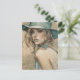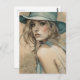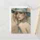 Mujer ventilado en postal azul