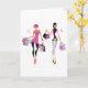 El diseño perfecto para cualquiera a quien le guste ir de compras. Esto tiene dos mujeres que han estado comprando. Ambos están caminando con una serie de bolsas de compras. Este diseño de compras femenino se ve muy bien en estas tarjetas de felicitación