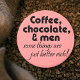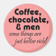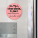 Las mujeres divertidas novedad le regalan imanes de café de chiste. Café, chocolate y hombres algunas cosas son más ricas. Diseño por Wise Crack regalos. Tipografía de escritura moderna y de moda con fuente negra y fondo rosa. Esto haría un regalo de cumpleaños hilarante para una madre, un amigo o un compañero de trabajo.