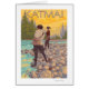 Women Fly Fishing - Katmai, Alaska - Vintage Travel Poster fue creada en 2007. Esta imagen muestra escenas de Katmai, AK.