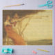 Este precioso papel de desenlace tiene una pintura de mujeres tocando trompetas sobre una partitura musical.
