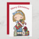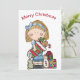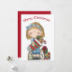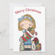 Tarjeta de felicitación de muñeca de trapo de Navidad sosteniendo una media