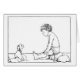 El niño pequeño que se sienta en la playa que mira fijamente una muñeca con un pescado dirige. Ilustracion fascinador del libro "Bill el minder", escrito e ilustrado por W. Heath Robinson en 1912. Esta imagen es del capítulo "los Campo-seguidores". "Las cabezas de los pescados sirvieron a los niños más jovenes para los ladrillos, o aún, después de un pequeño ajuste, para las muñecas, con las cuales se divirtieron durante las tardes largas del invierno."