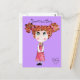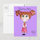 ¿Qué tal si esta linda niñita le da tu mensaje? Es adorable con su pelo loco y sus grandes ojos verdes. Ella lleva un vestido rosa con flores amarillas y zapatos brillantes negros. Parece tímida pero, créanme, no lo es :) Agrega tu texto y haz especial esta postal. Puede cambiar el color de fondo si lo desea haciendo clic en el botón "personalizar it " y luego "editar". De mi pintura original de tinta y acuarela en papel. Estampilla de posta disponible