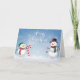 Muñeco de nieve celebrando mientras nieva enviando deseos festivos. Puedes agregar tu propio verso utilizando la plantilla. Compra tu tarjeta hoy mismo haciendo clic en el enlace de la tienda.