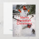 Una tarjeta de Navidad de leñador exclusivamente canadiense con motosierra y casco de seguridad.