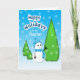 ¡Tarjeta linda del día de fiesta del navidad para el profesor que ofrece un muñeco de nieve, o snowkid! en la nieve.