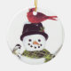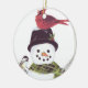 Muñeco de nieve precioso y su amigo cardinal rojo brillante.