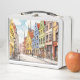 Bonita lonchera blanca con paisaje pintoresco con Munich, Alemania famoso lugar en el este.