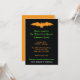 Murciélago naranja de Halloween en invitación de fiesta negra