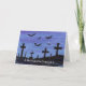 Un pequeño paisaje acuarela de murciélagos huyendo sobre un cementerio por la noche adorna esta espeluznante tarjeta de notas de Halloween. Personalizar cambiando el texto para que se adapte a ti mismo!