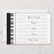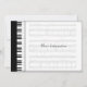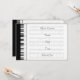 Esta tarjeta de entrada de evento o de invitación presenta un tema musical en blanco y negro con un teclado de piano verticalmente en el borde izquierdo de la tarjeta con información de eventos de personalizable a la derecha sobre el fondo de la partitura. Fácil de personalizar. Utilice el botón Ti Personalizar para personalizar completamente el diseño - cambiar la calidad del papel, los estilos de fuente, tamaños y colores. Todos los elementos del diseño son regulables y extraíbles para que se adapten a su evento. El diseño se repite en la parte posterior de la tarjeta con texto de marcador de posición para más información.